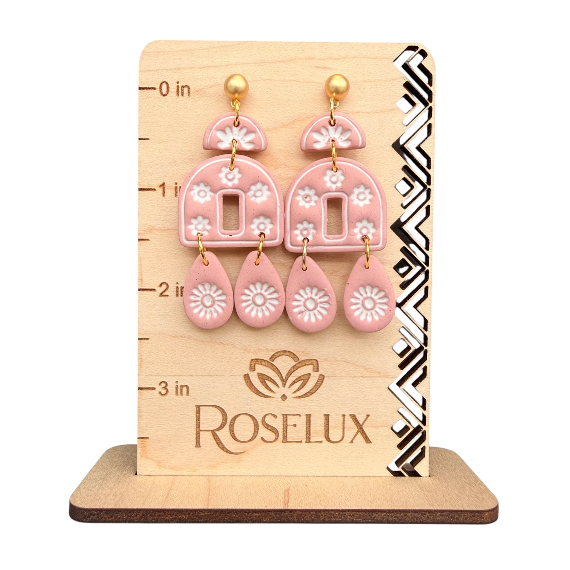 Every Roselux clay piece is thoughtfully handmade, giving each design its own unique pattern, texture, and character. No two are ever exactly alike. Paired with quality materials and a lightweight feel, these pieces are made to bring a touch of effortless beauty to your everyday style.