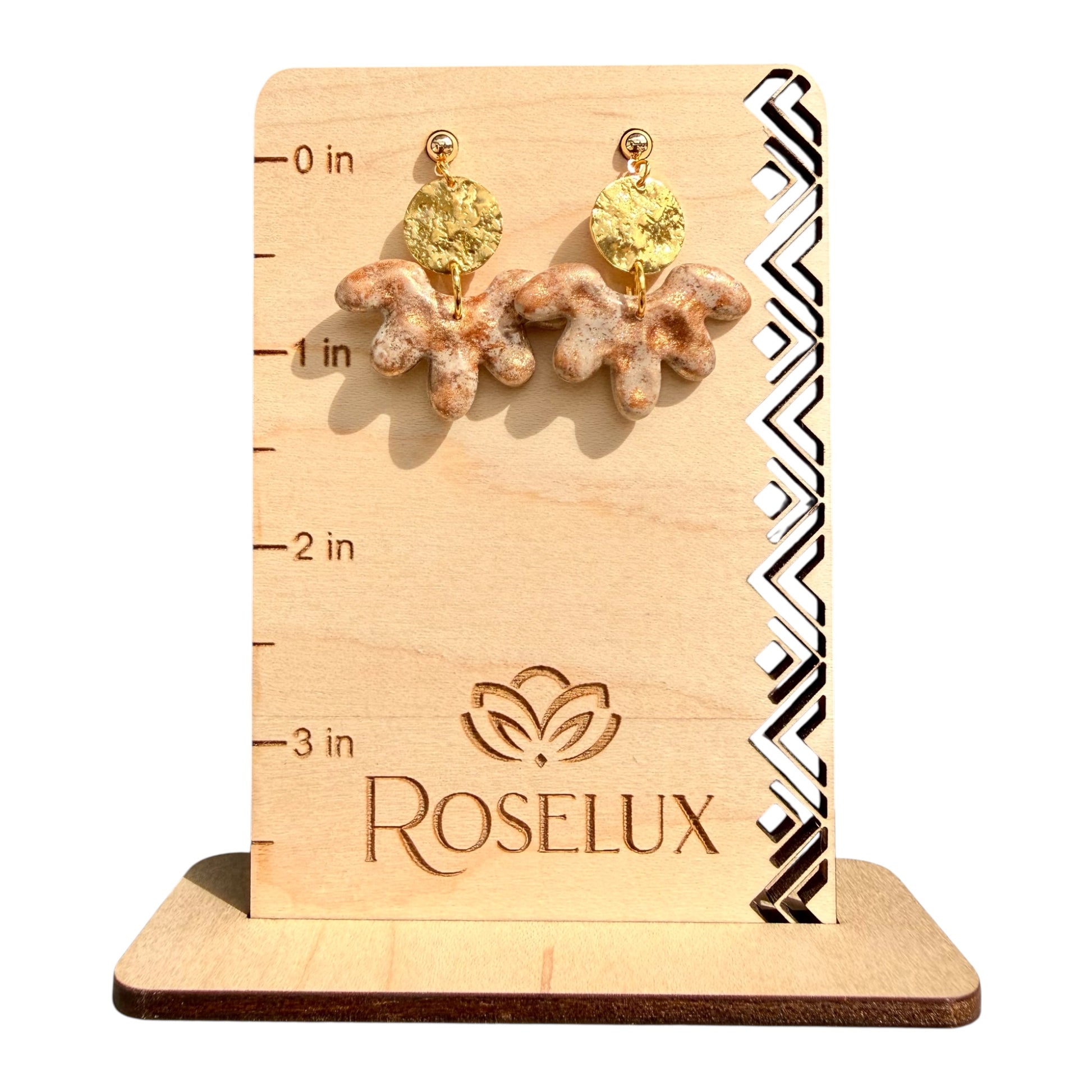 Every Roselux clay piece is thoughtfully handmade, giving each design its own unique pattern, texture, and character. No two are ever exactly alike. Paired with quality materials and a lightweight feel, these pieces are made to bring a touch of effortless beauty to your everyday style.